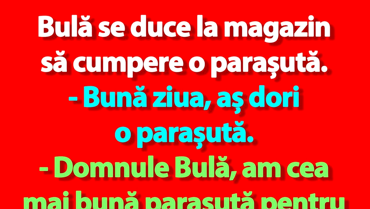 BANC | Bulă se duce la magazin să cumpere o parașută