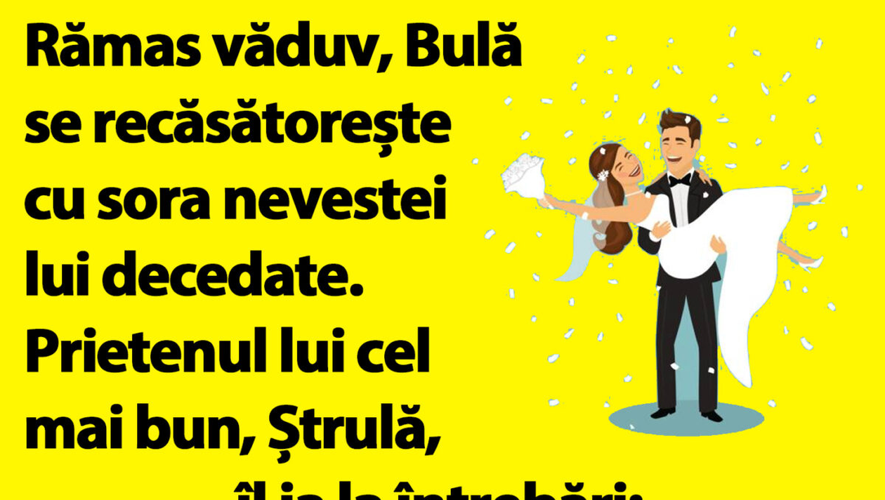 Dragi cititori, CANCAN.RO vrea să vă aducă zâmbetul pe buze în această dimineață, așa că vă pune la dispoziție o glumă bună cu Bulă. Conversația hilară dintre el și Ștrulă, după ce Bulă a divorțat de Bubulina și se recăsătorește. Vei râde cu lacrimi!