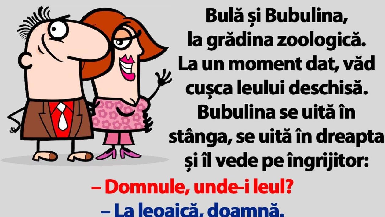 Este joi, ceea ce înseamnă că weekendul este din ce în ce mai aproape. CANCAN.ro este gata să dea startul distracției! Astăzi, redacția ți-a pregătit un banc savuros, menit să vă facă ziua mai bună. Vă garantăm că o să râdeți cu lacrimi! Protagonistul glumei de astăzi este nimeni altul decât simpaticul și celebrul Bulă. Spor la distracție și voie bună!