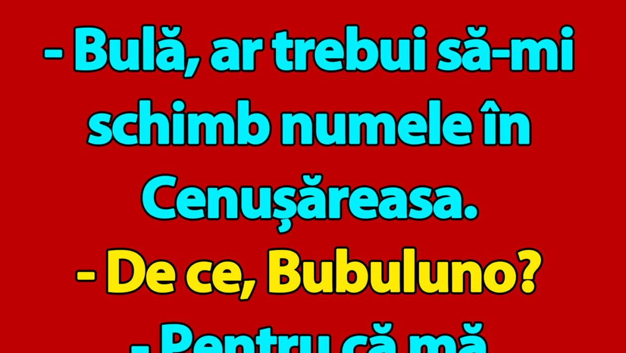– Bulă, ar trebui să-mi schimb numele în Cenușăreasa.