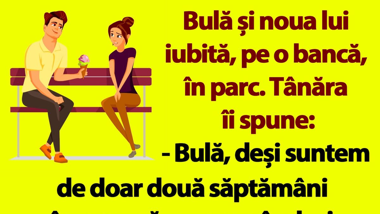 Dragi cititori, începe să se simtă atmosfera de weekend. Așadar, CANCAN.RO a pregătit un banc savuros pentru a vă relaxa și a vă aduce zâmbetul pe buze. Gluma îi are în prim-plan pe Bulă, personajul preferat al românilor, și pe iubita sa. Spor la citit!