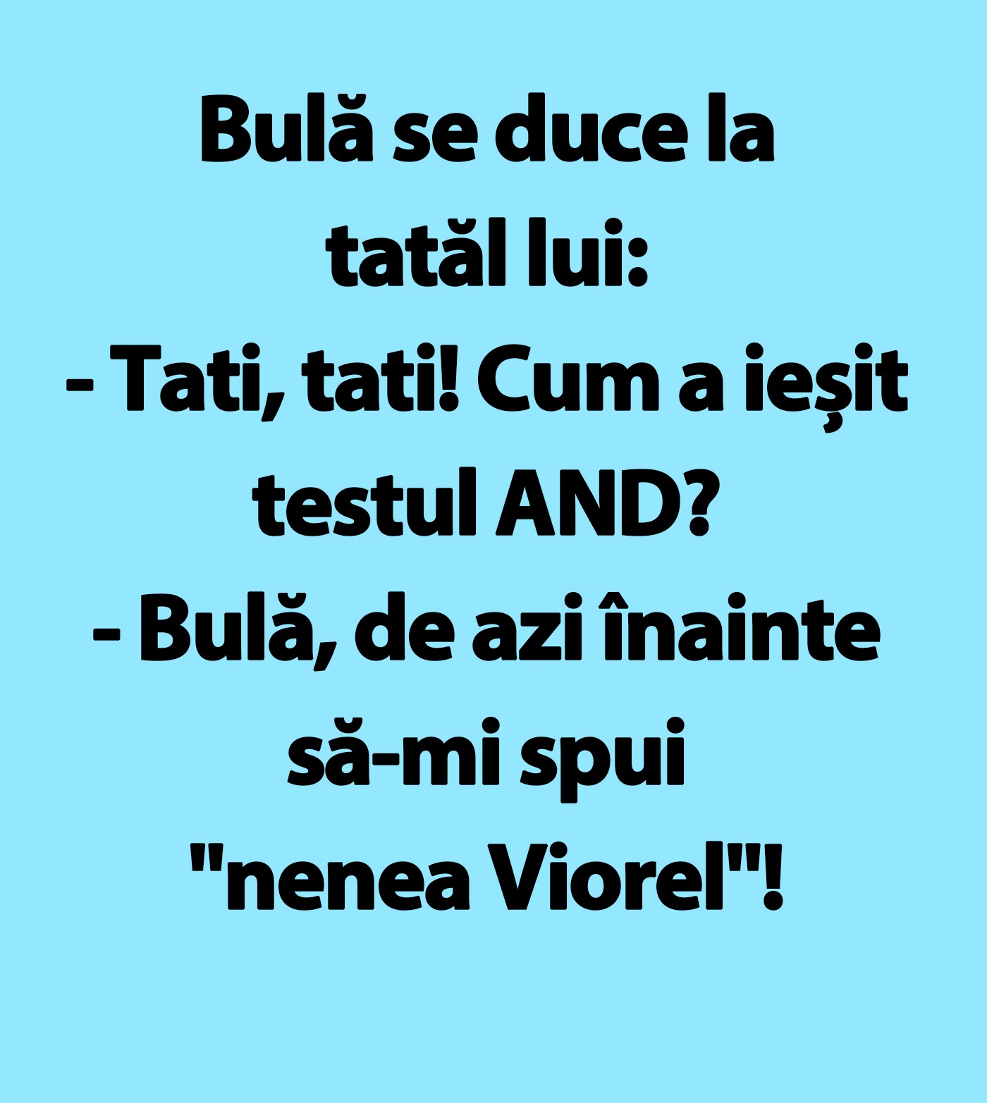 – Bulă, de azi înainte să-mi spui „nenea Viorel”!