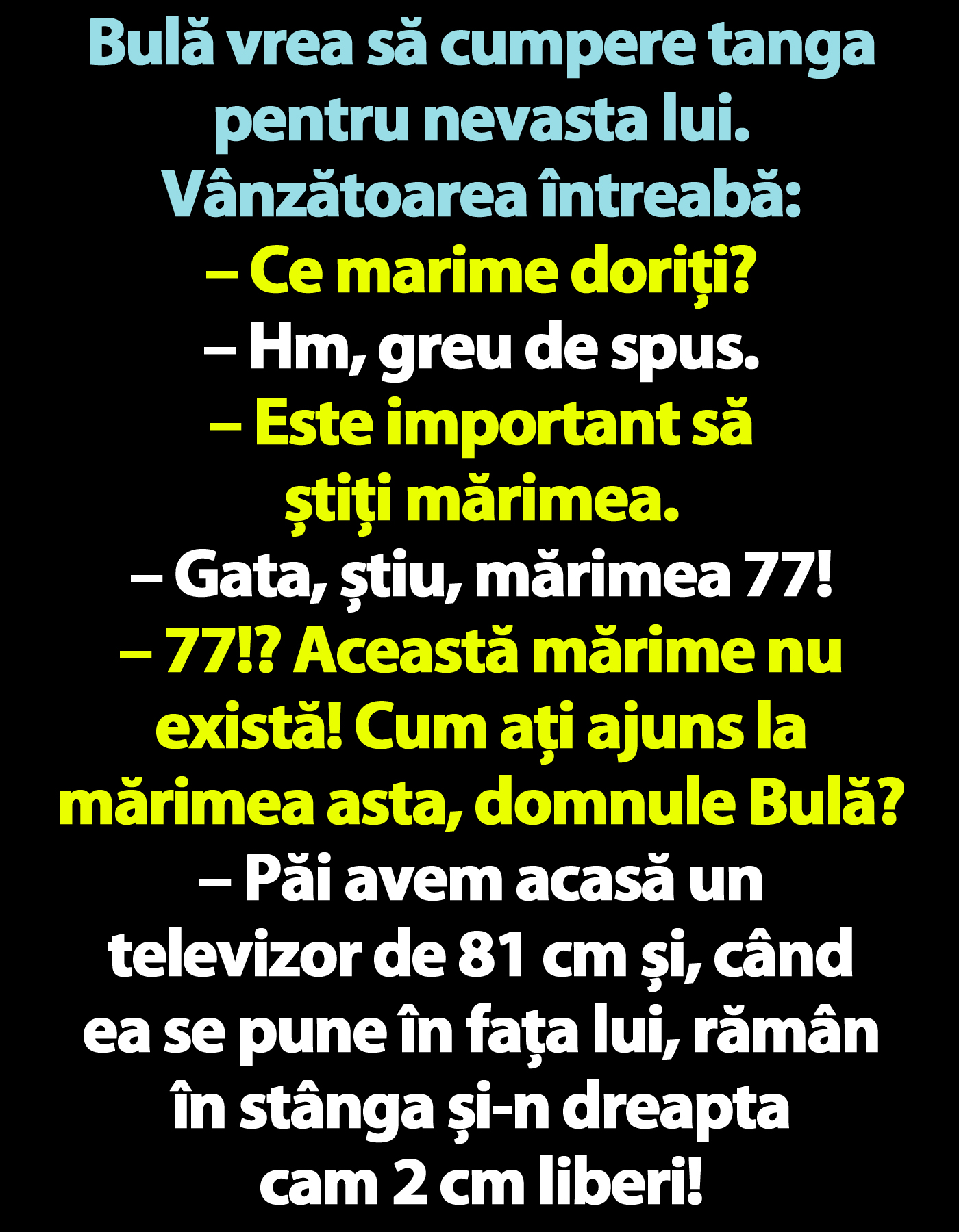 – 77!? Această mărime nu există! Cum ați ajuns la mărimea asta, domnule Bulă?