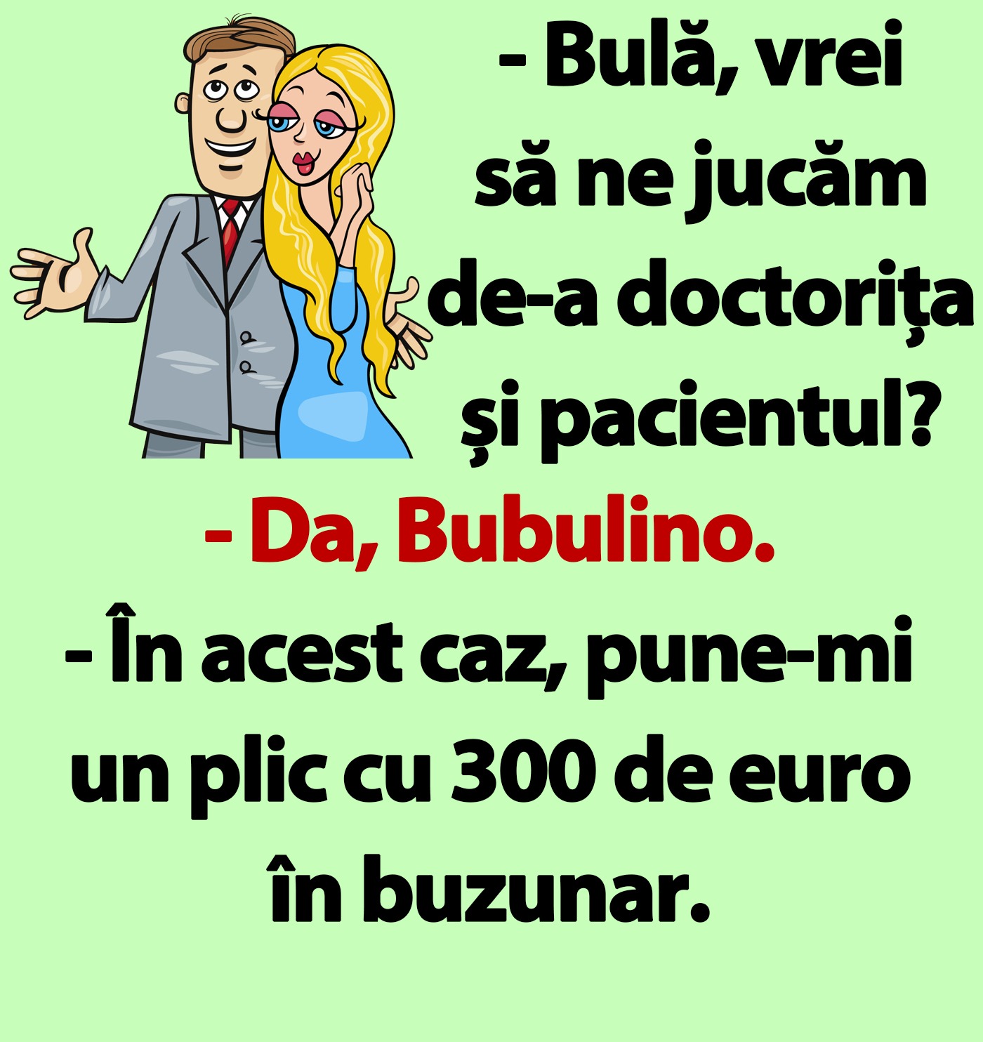 – Bulă, vrei să ne jucăm de-a doctorița și pacientul?