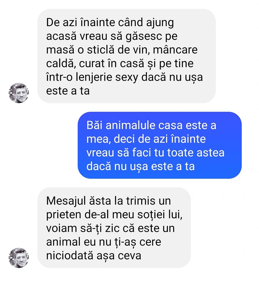 -Băi animalule casa este a mea, deci de azi înainte vreau să faci tu toate astea dacă nu ușa este a ta.