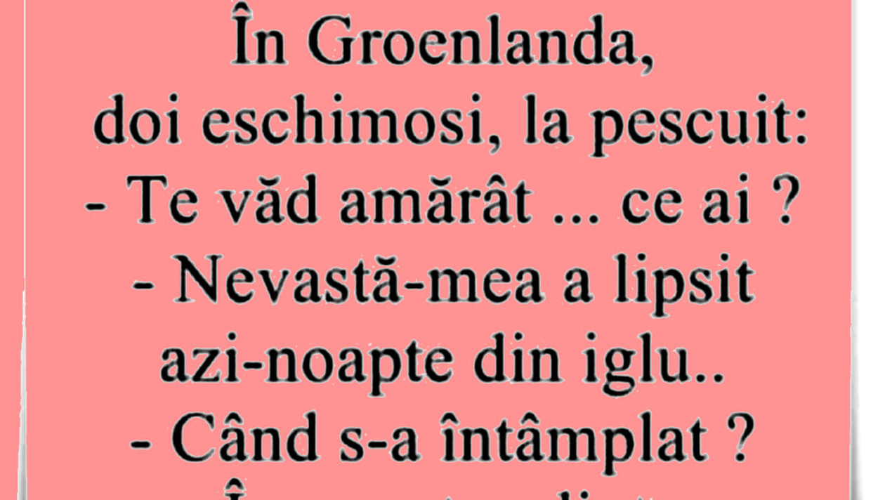 Acasă » Bancuri » BANC | Ce probleme conjugale au eschimoșii în Groenlanda: „Nevastă-mea a lipsit azi-noapte din iglu”