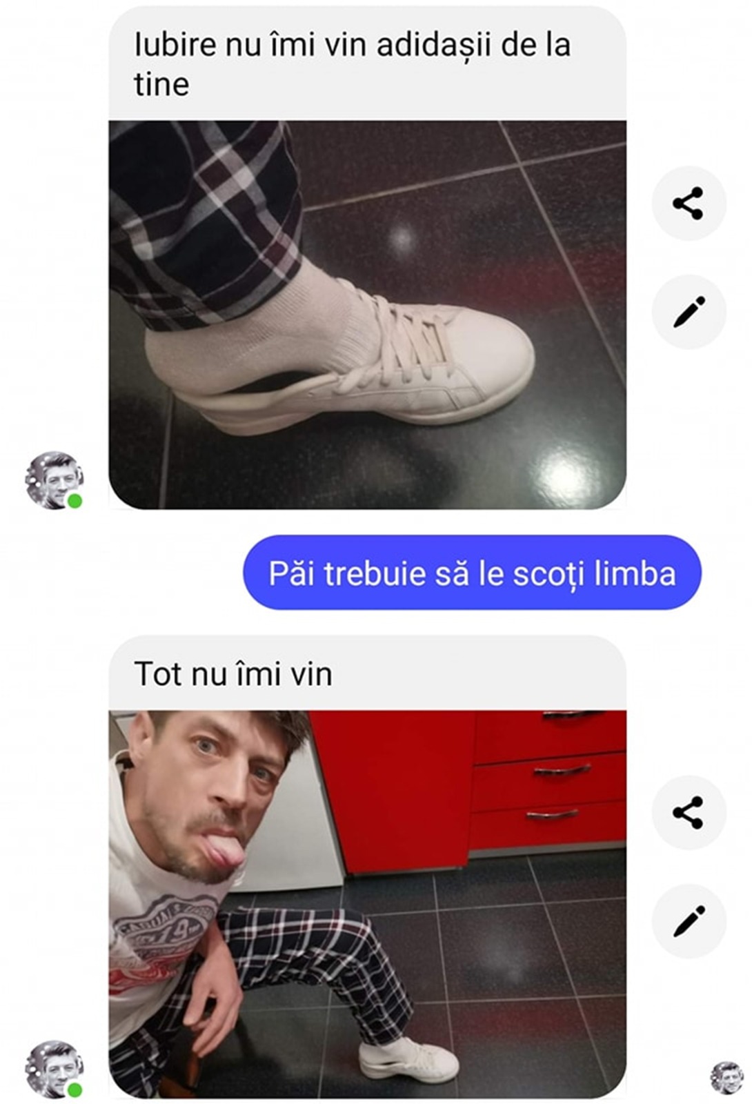 – Iubire nu îmi vin adidașii de la tine.
