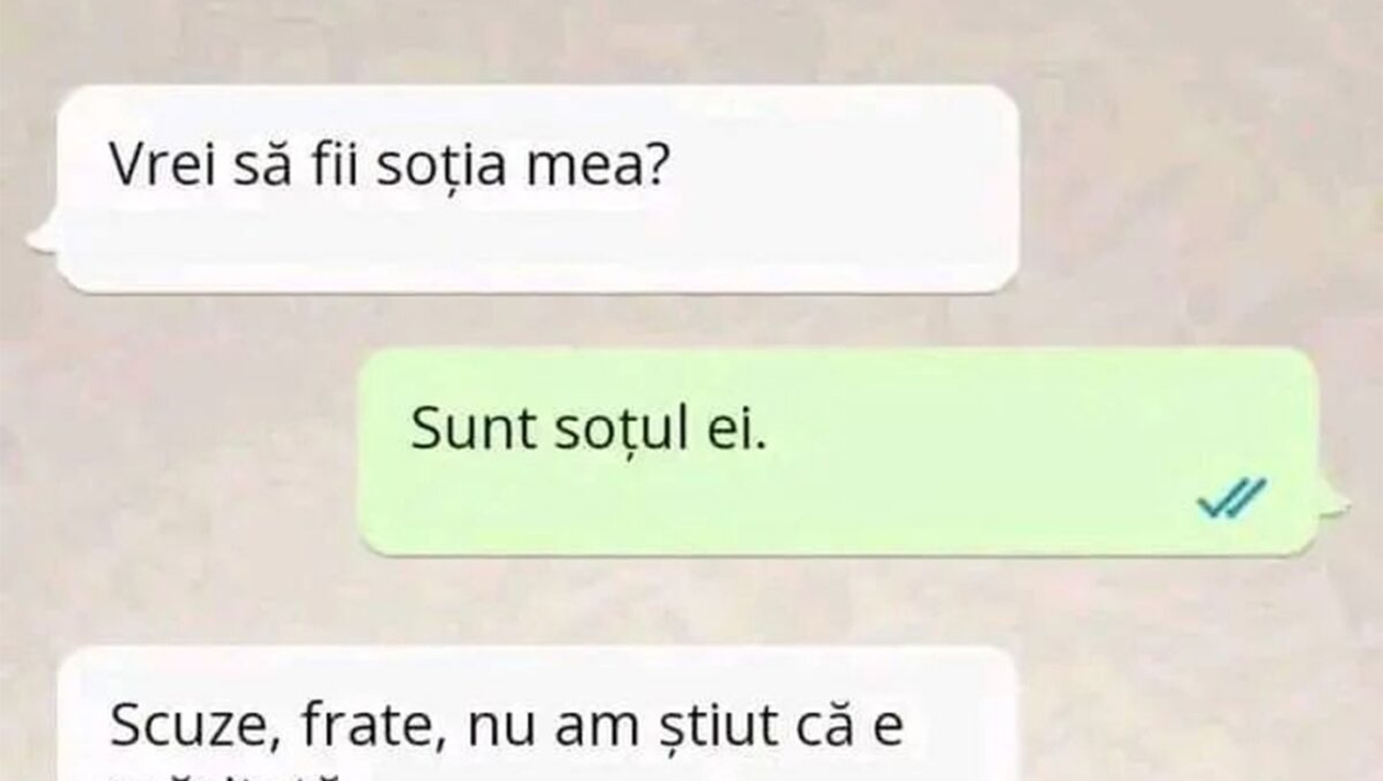 Nu trebuie să treacă nicio zi fără o porție copioasă de râs, așa că am pregătit un banc care cu siguranță te va amuza copios. Protagonistul de astăzi este un bărbat care își cere partenera în căsătorie pe WhatsApp. Răspunsul acesteia și deznodământul sunt hilare.
