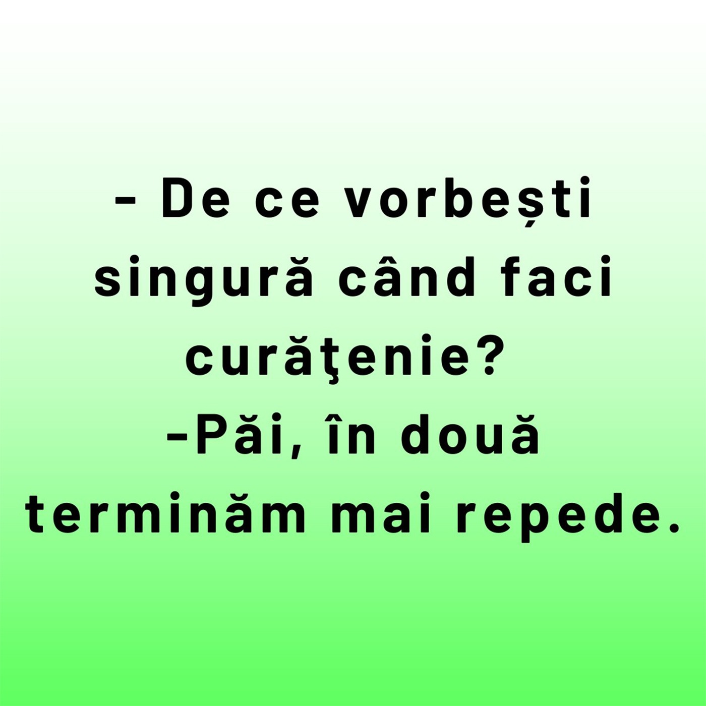 – De ce vorbești singură când faci curățenie?