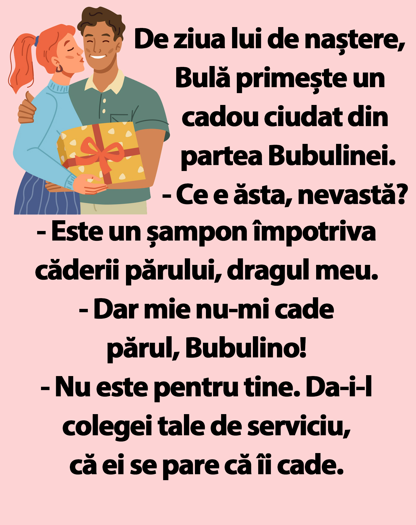 CANCAN.RO îți înseninează ziua cu un banc de nota 10. De ziua lui, Bulă primește un cadou ciudat din partea Bubulinei.