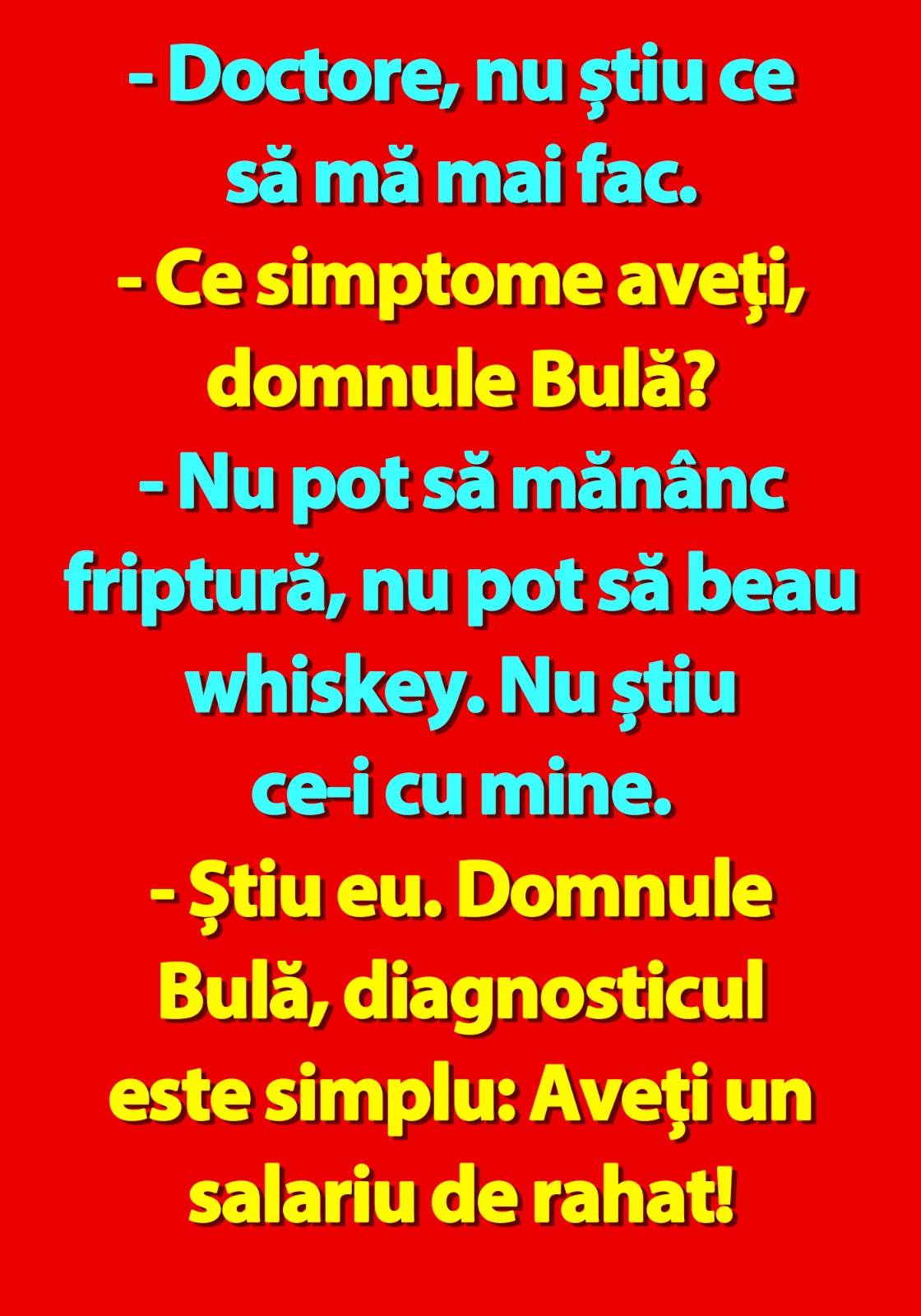 – Știu eu. Domnule Bulă, diagnosticul este simplu: Aveți un salariu de rahat!