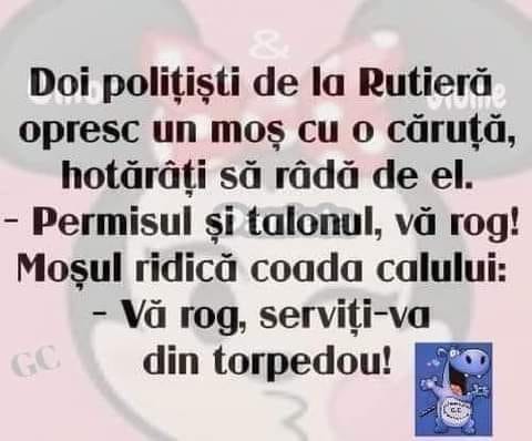 Doi polițiști de la Rutieră opresc un moș cu o căruță, hotărâți să râdă de el.