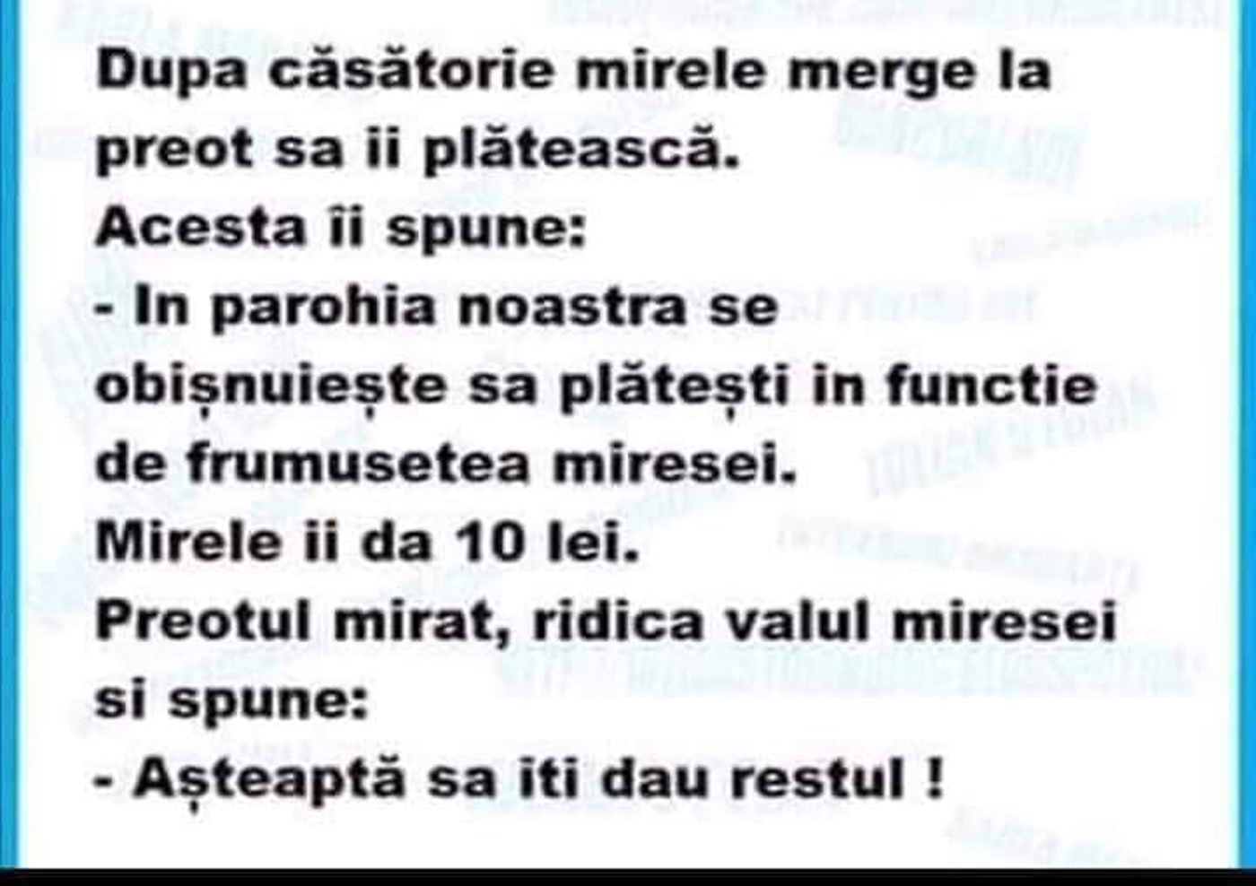 După căsătorie, mirele merge la preot să îi plătească. Acesta îi spune: