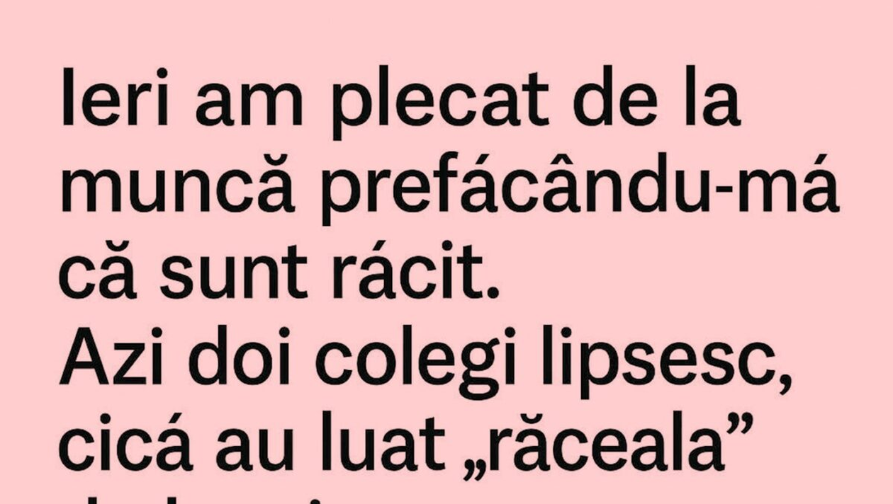 – Ieri am plecat de la muncă prefăcându-mă că sunt răcit. Azi, doi colegi lipsesc, cică au luat ”răceala” de la mine… Numai mincinoși peste tot.