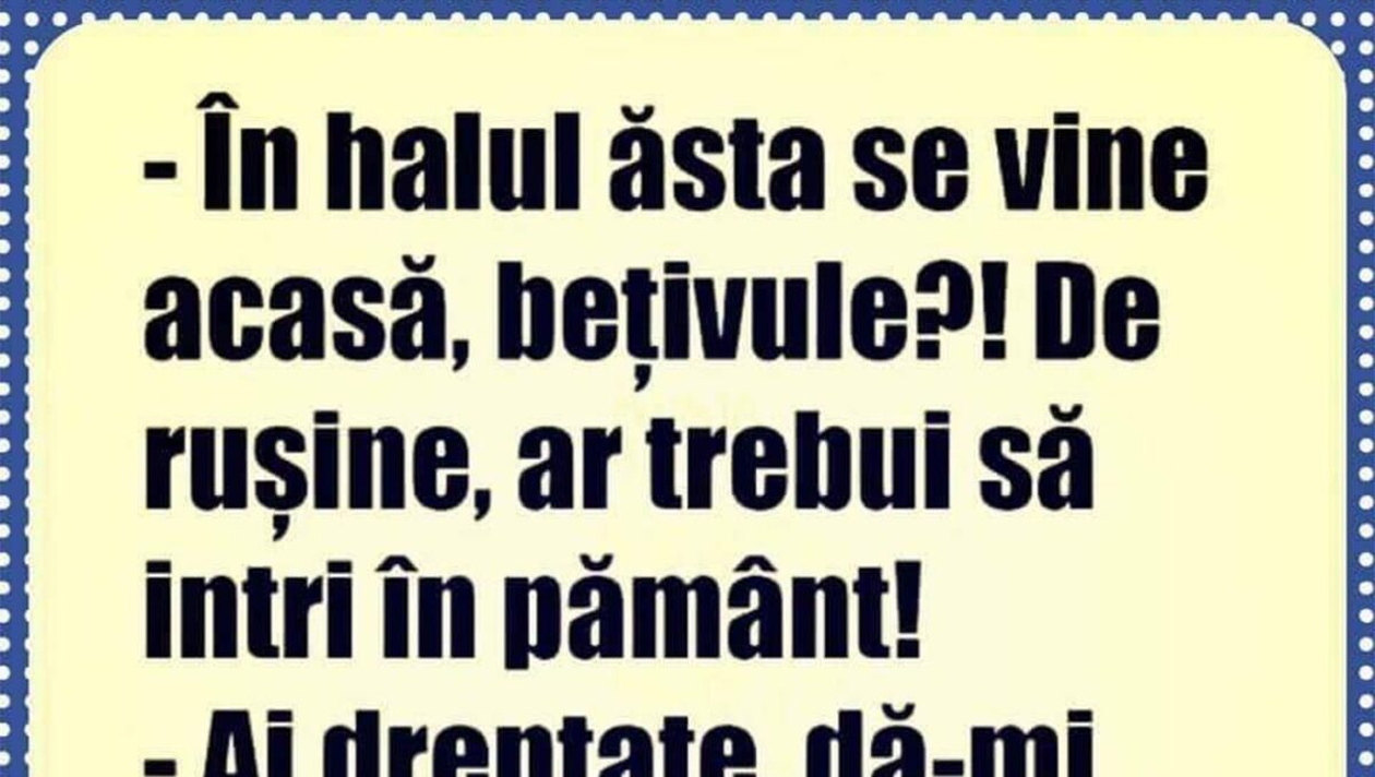 BANC | „În halul ăsta se vine acasă, bețivule?”