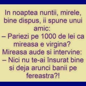 -Pariezi pe 1000 de lei că mireasa e virgină?