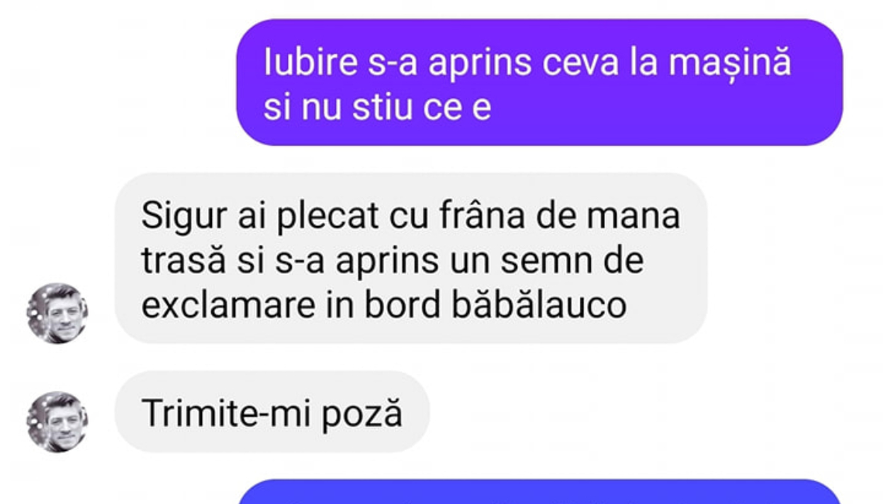 „-Iubire, s-a aprins ceva la mașină și nu știu ce e.