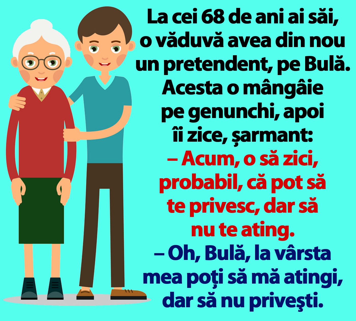 – Oh, Bulă, la vârsta mea poţi să mă atingi, dar să nu priveşti”