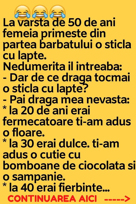 La varsta de 50 de ani femeia primeste din partea barbatului o sticla cu lapte.