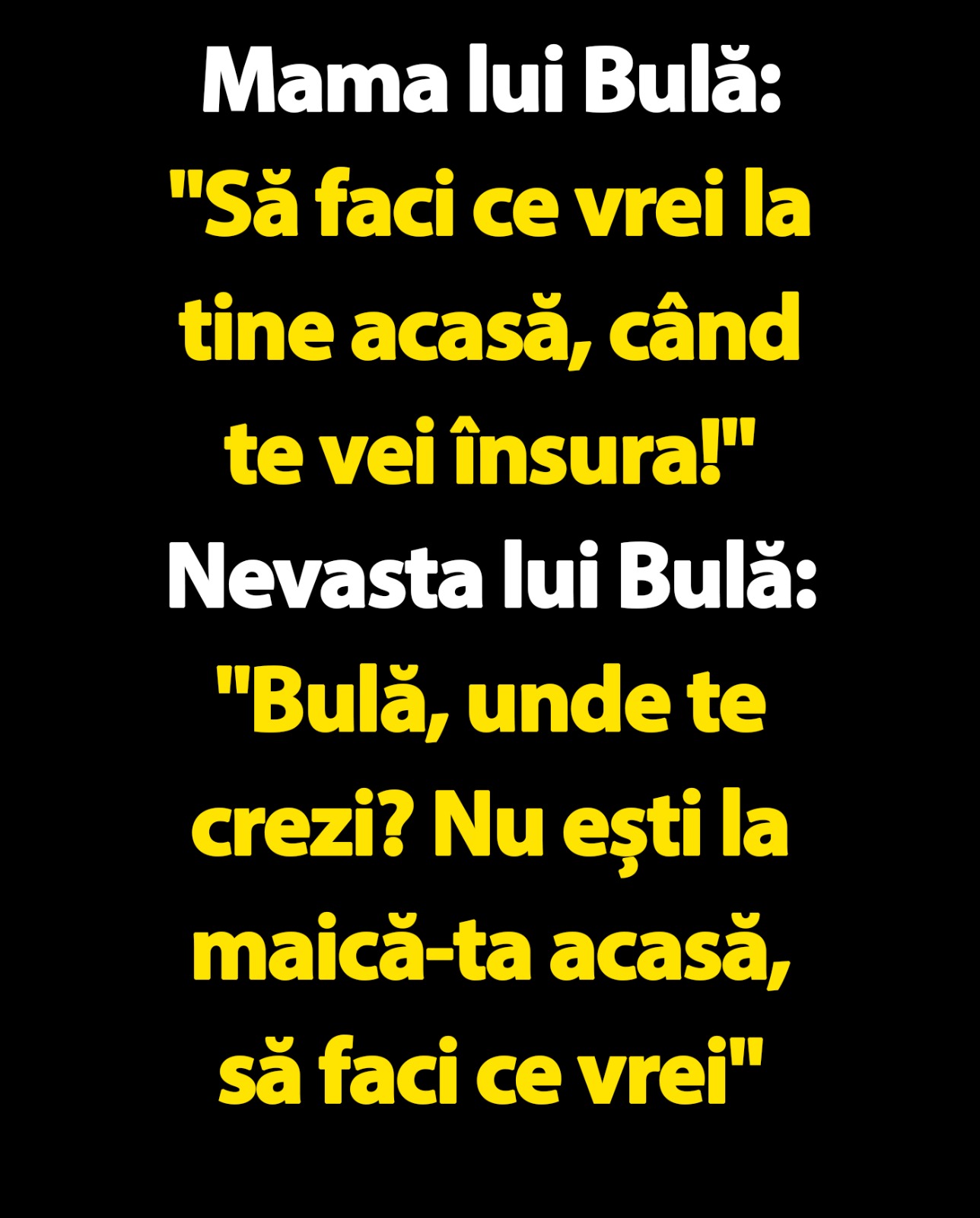 Nevasta lui Bulă: „Bulă, unde te crezi? Nu ești la maică-ta acasă, să faci ce vrei”