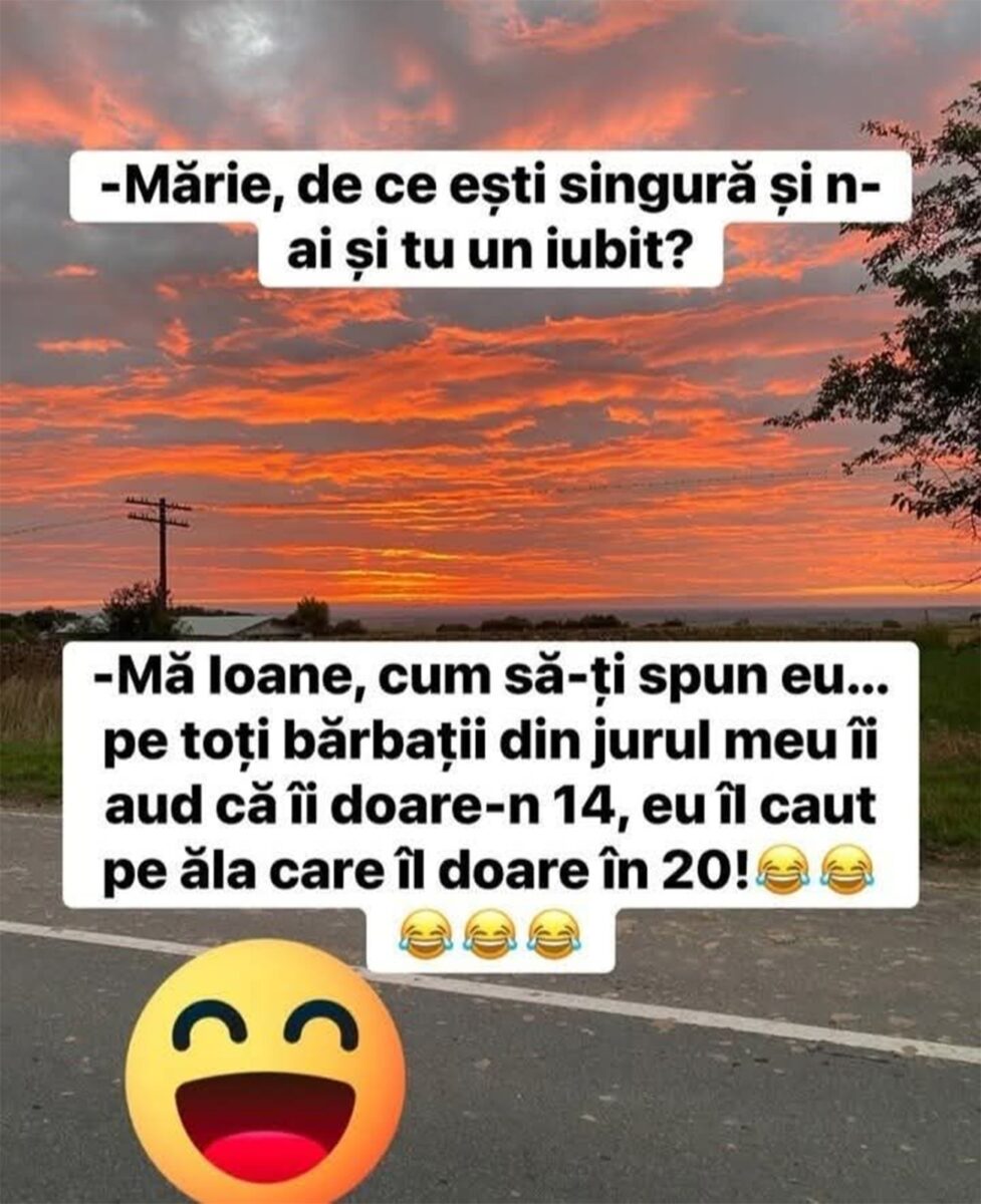 -Mă Ioane, cum să îți spun eu? Pe toți bărbații din jurul meu îi aud că îi doare în 14, iar eu îl caut pe ăla pe care să îl doară în 20!