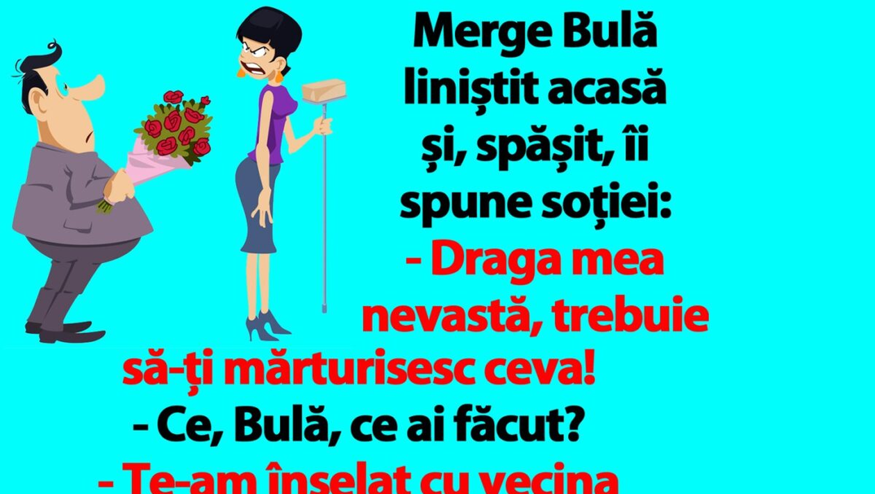 – Draga mea nevastă, trebuie să-ți mărturisesc ceva!
