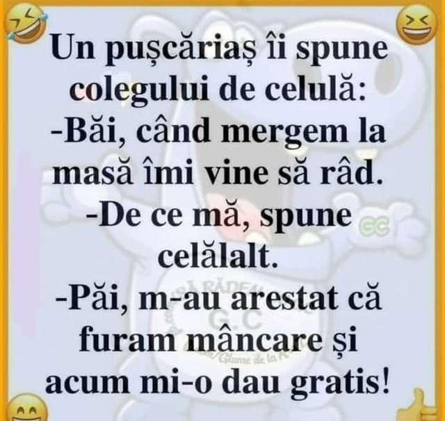 Acasă » Bancuri » BANC | Motivul pentru care unui pușcăriaș îi vine să râdă când merge la masa