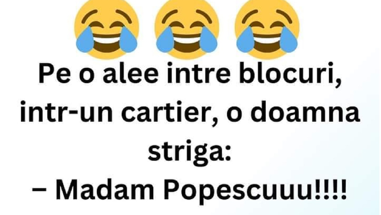 Pe o alee între blocuri, o doamnă strigă: Madam Popescuuu!