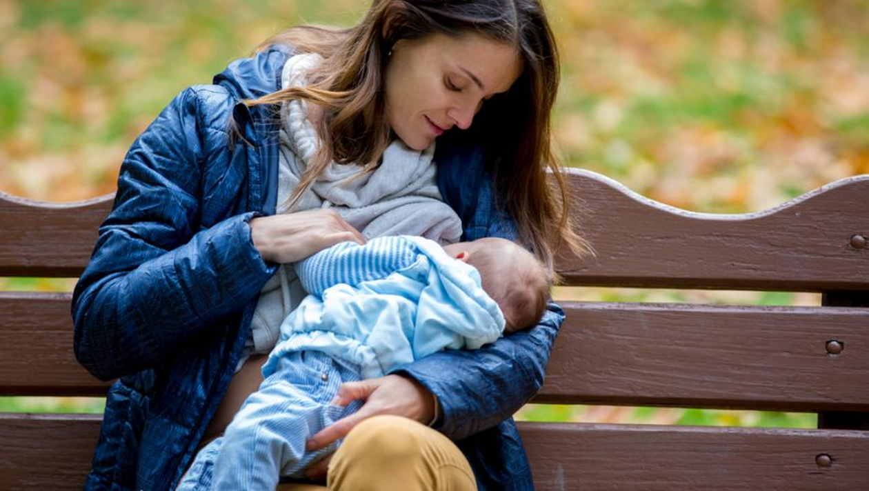 Pe o bancă, o mămică alăpta. Lângă ea, un tip se uita. După o vreme întreabă: