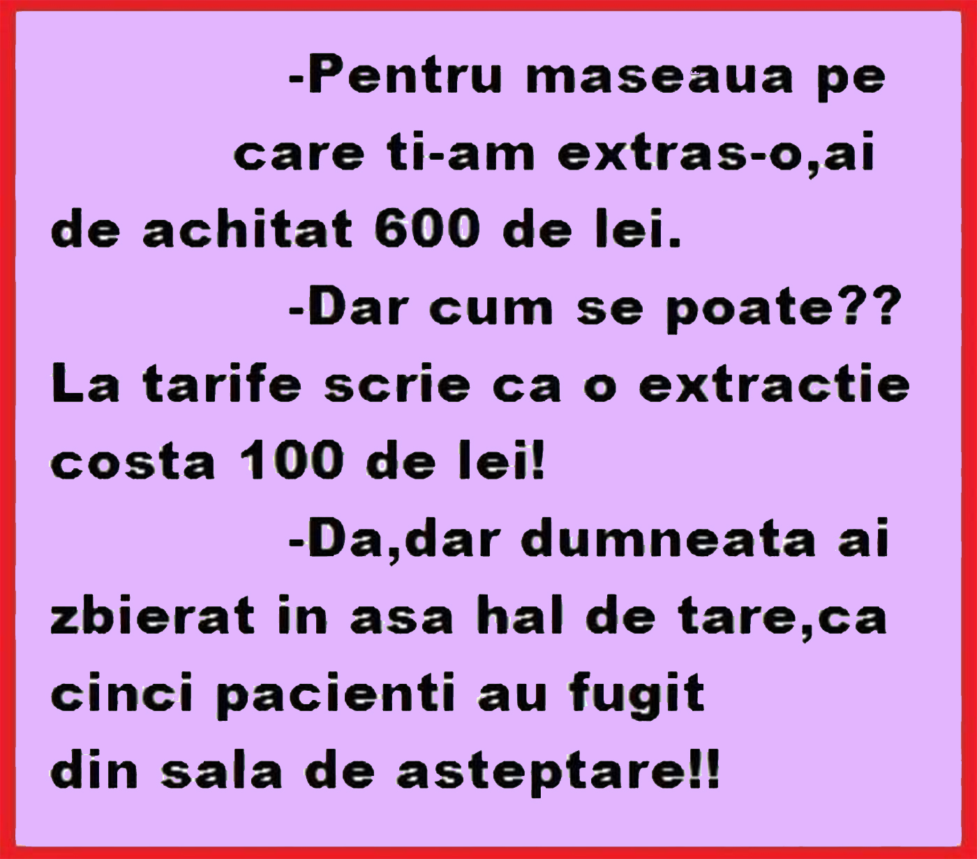 – Dar cum se poate?? La tarife scrie că o extracție costă 100 de lei!