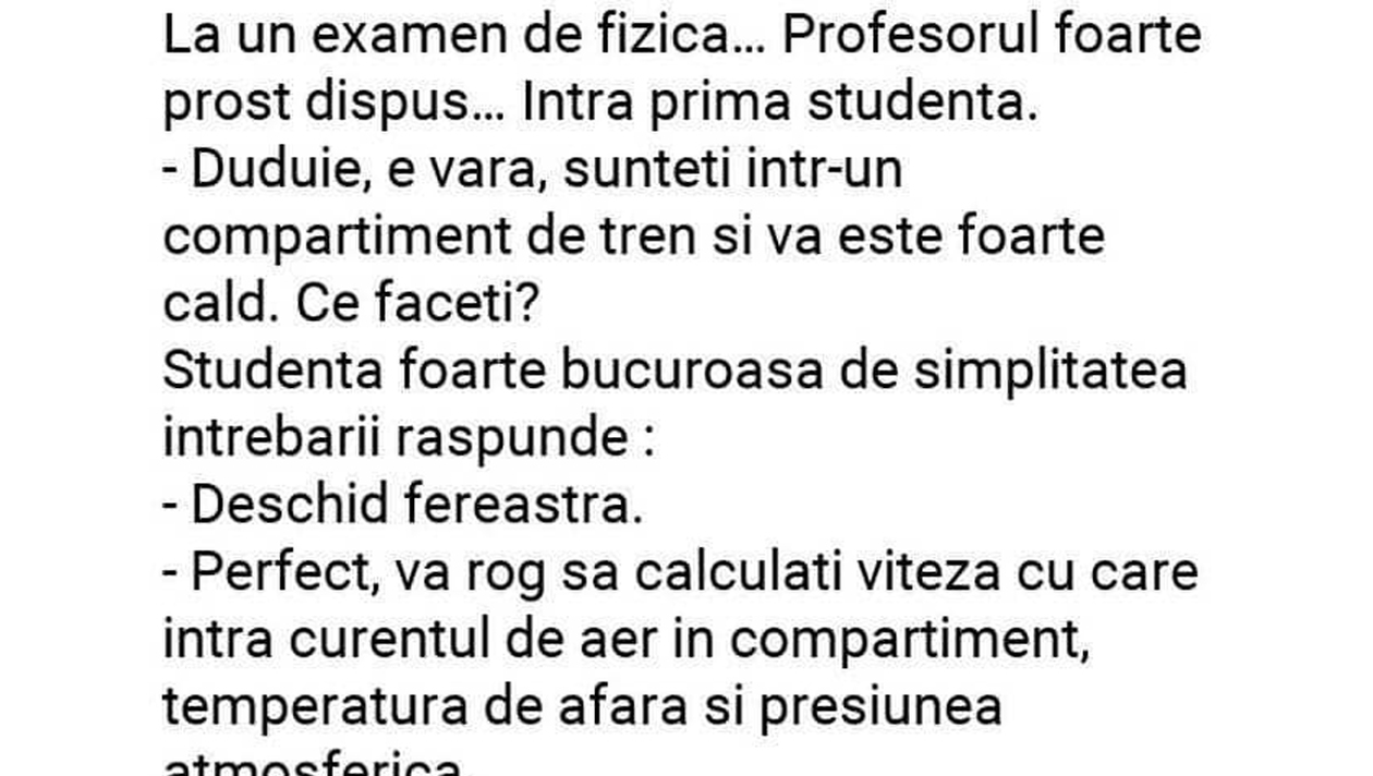 -Domnule profesor nu mai insistați. Și să știu că mi-o trag cu tot trenul, dar fereastra aia tot nu o deschid.