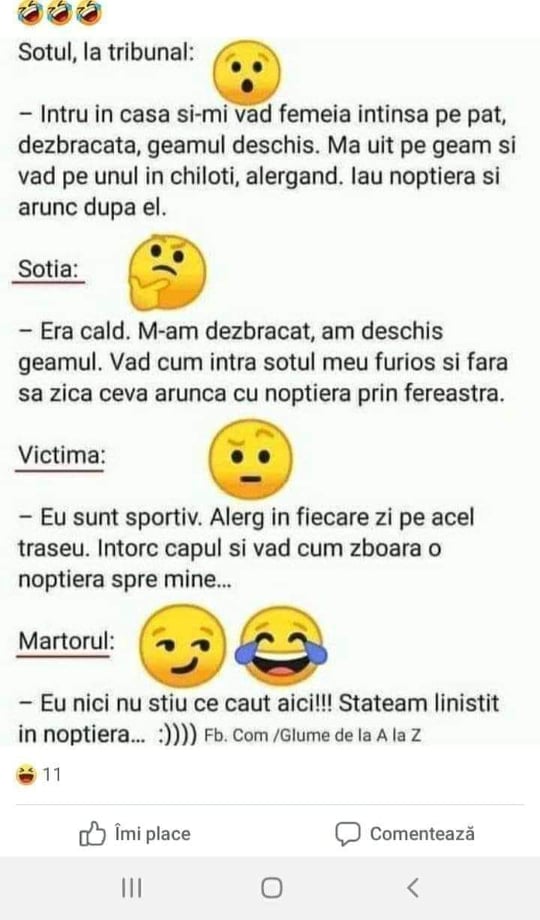 – Martorul : “Eu nici nu stiu ce caut aici !!! Stateam linistit in noptiera……”