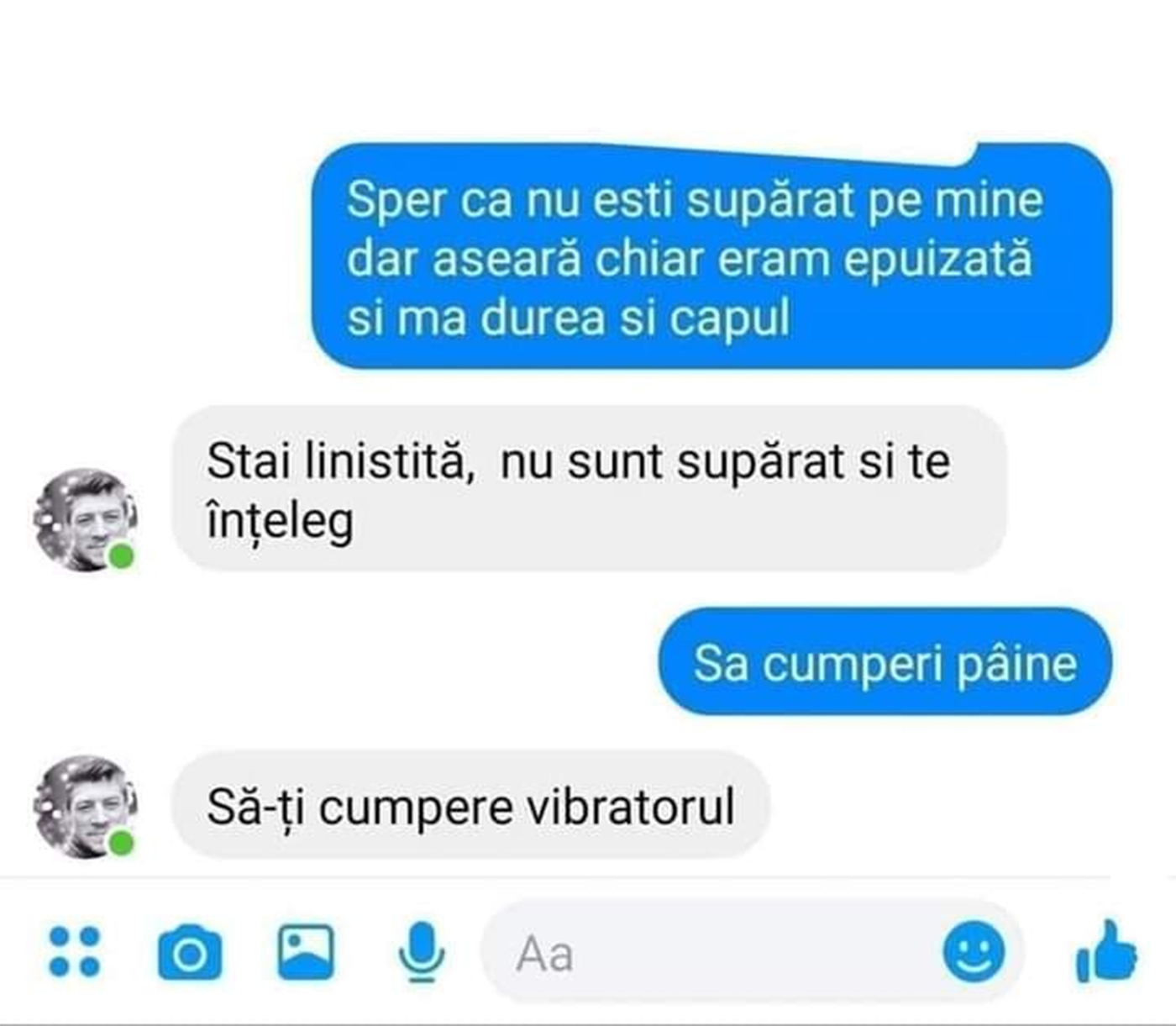 -Stai liniștită, nu mă supăr și te înțeleg.