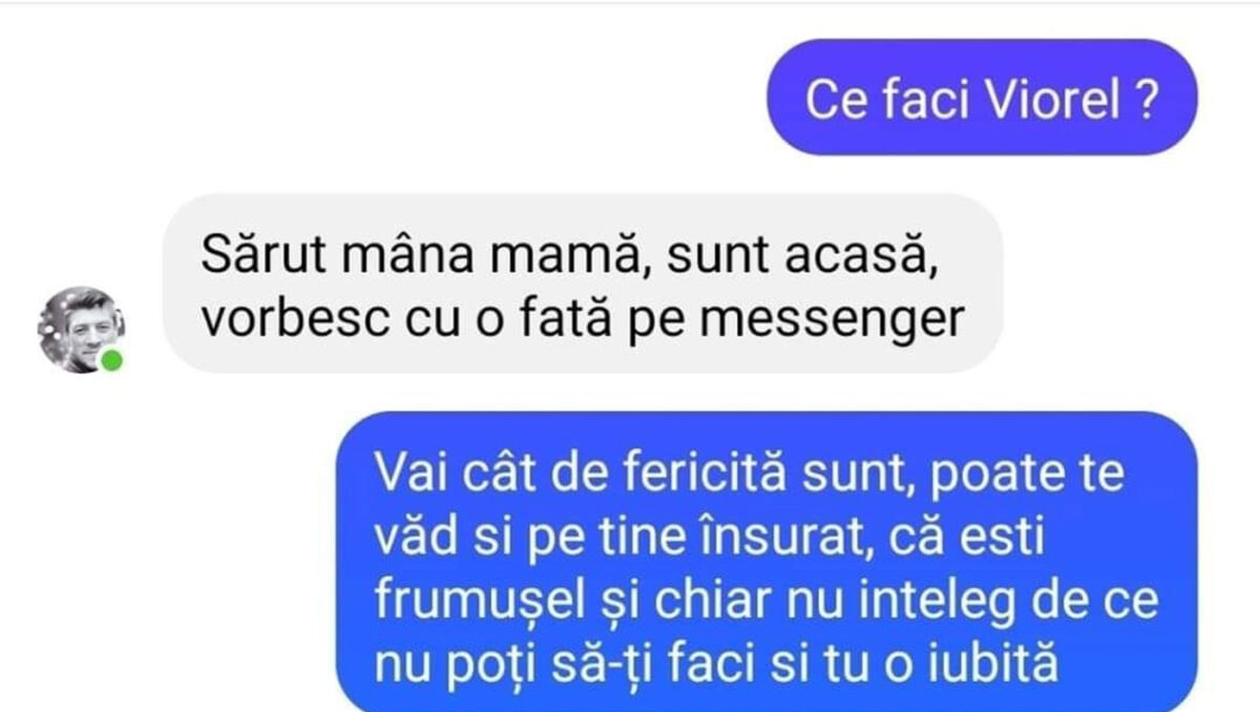 -Săru’mâna, mamă! Sunt acasă, vorbesc cu o fată pe Messenger.