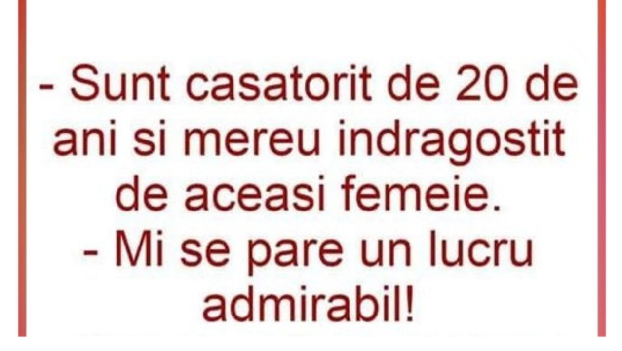 – Sunt căsătorit de 20 de ani și mereu îndrăgostit de aceeași femeie.