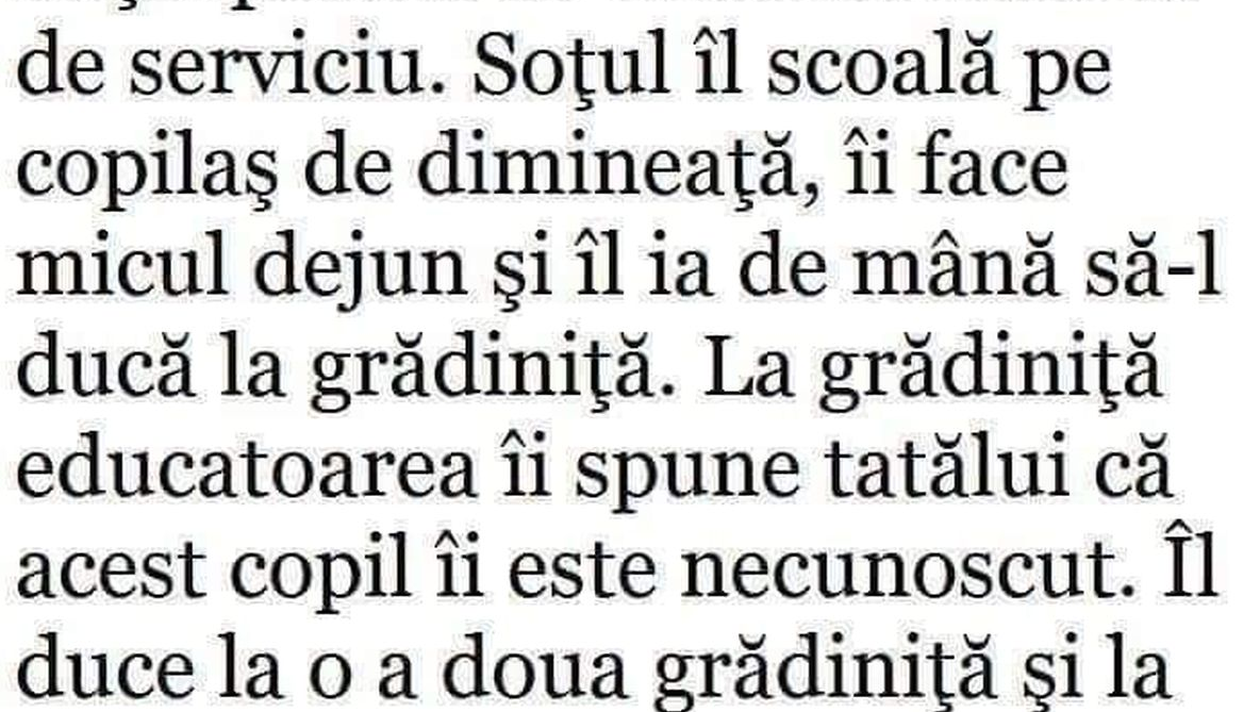 La gradiniţă, educatoarea îi spune tatălui că acest copilaş îi este necunoscut.