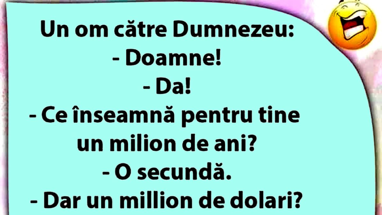 O porție de râs face bine oricui, iar CANCAN.RO vă pune la dispoziţie un banc amuzant. Iată ce ți-am pregătit.
