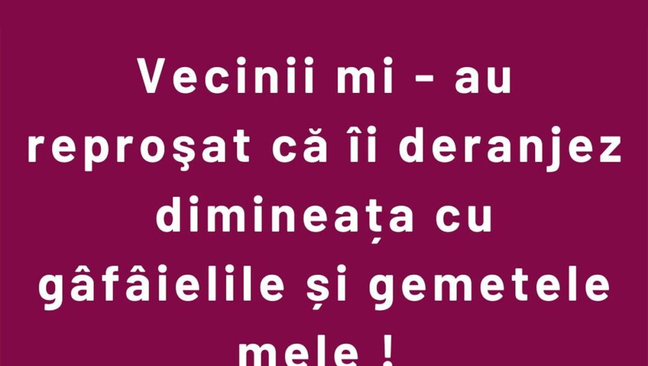 Dragă cititorule, CANCAN.RO ți-a pregătit bancul zilei. Locatarii unui bloc sunt deranjați de gemetele și gâfâielile unui vecin. Ești pregătit să râzi cum nu ai mai făcut-o de mult timp? Dacă da, spor și voie bună!