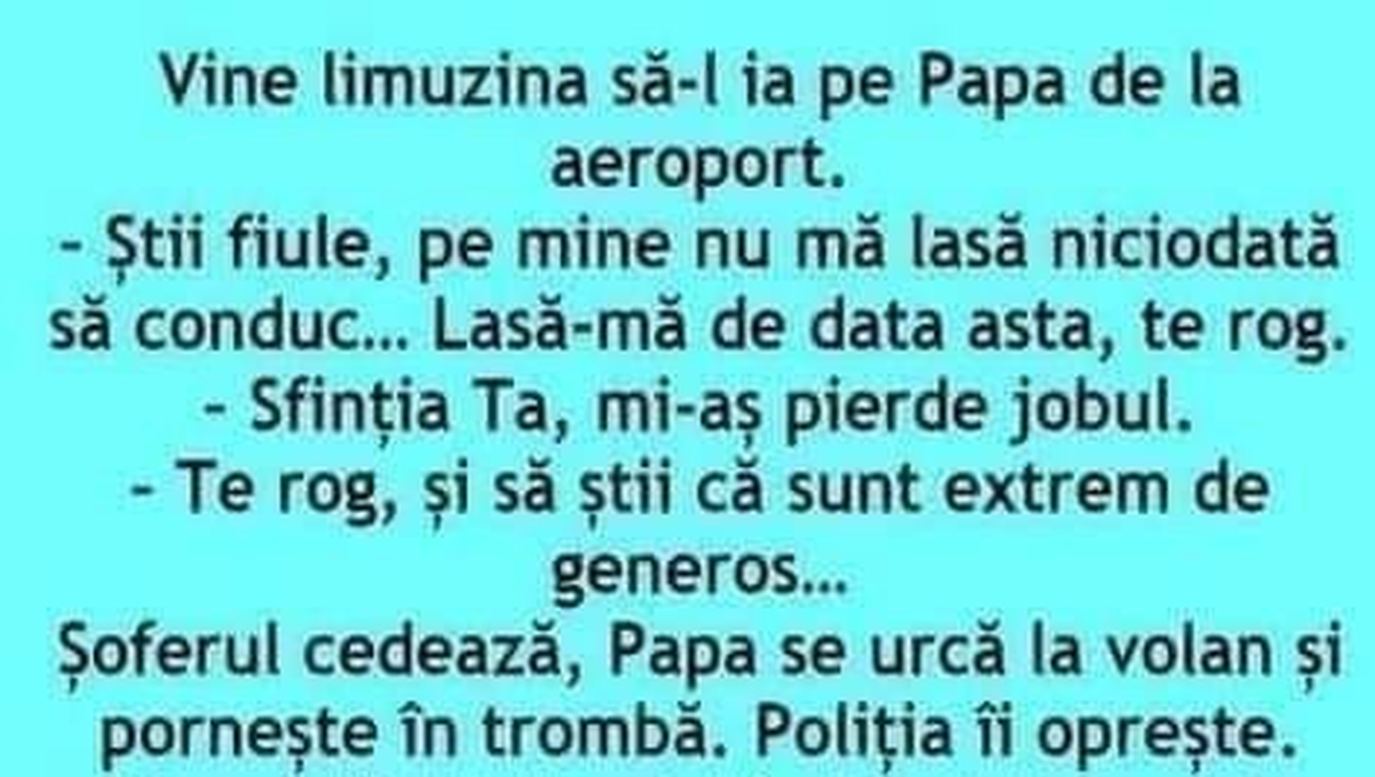 – Cred că-i Dumnezeu, pentru că Papa îi conduce mașina.