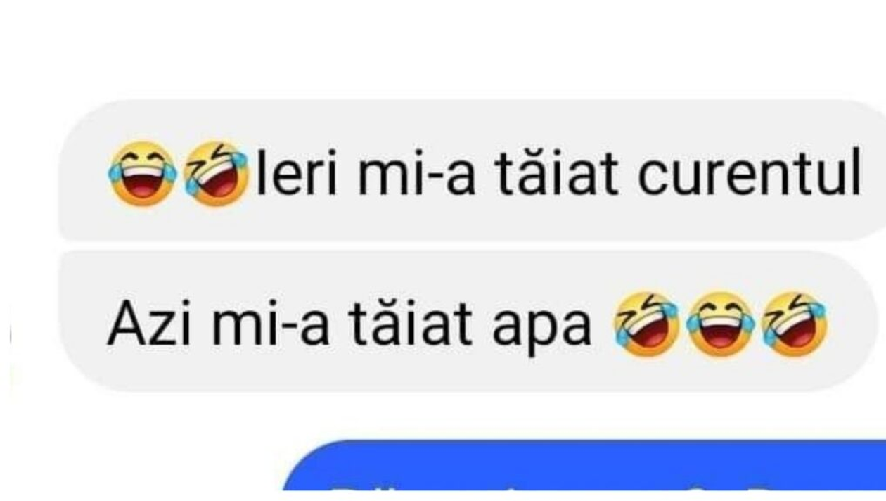 – Ieri mi-a tăiat curentul. Azi mi-a tăiat apa.