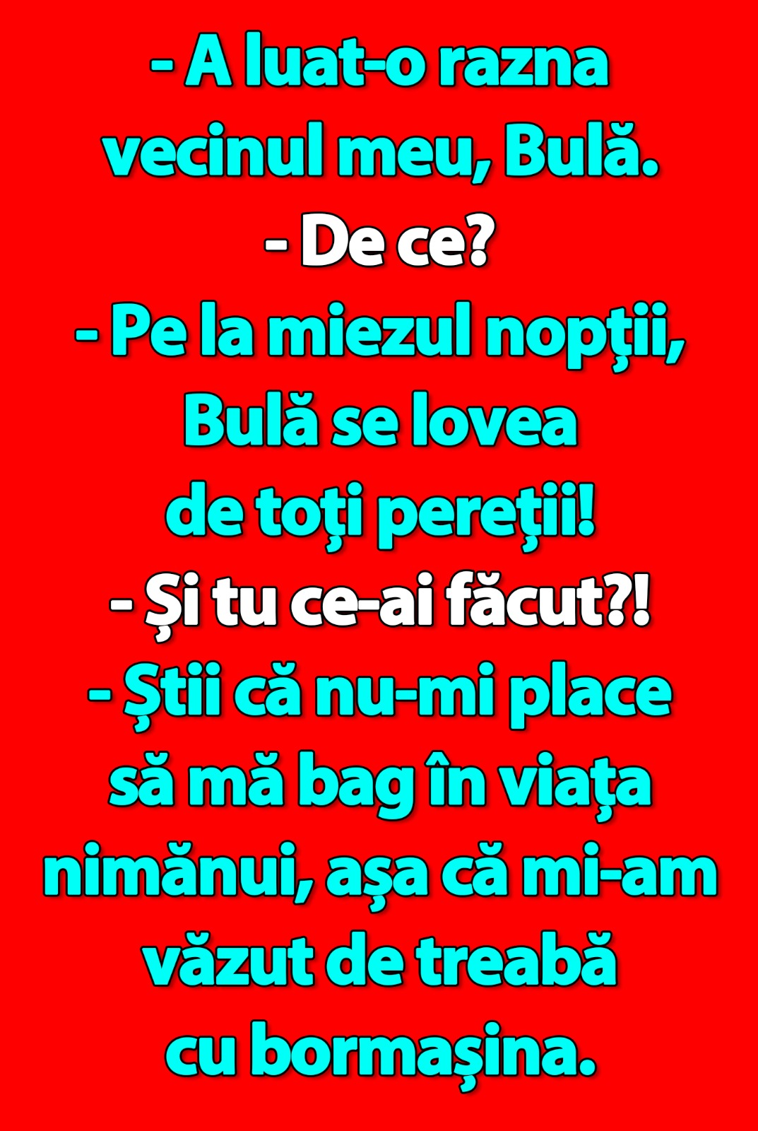 Bancul de miercuri | „A luat-o razna vecinul meu, Bulă”