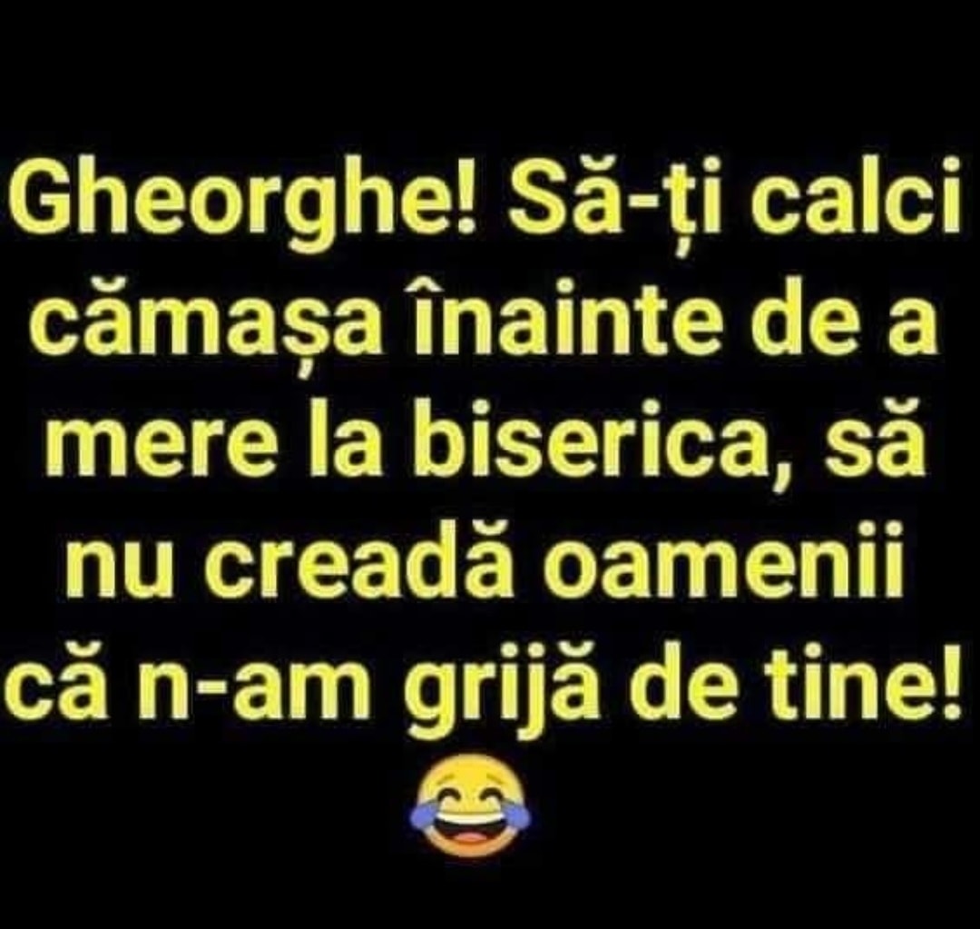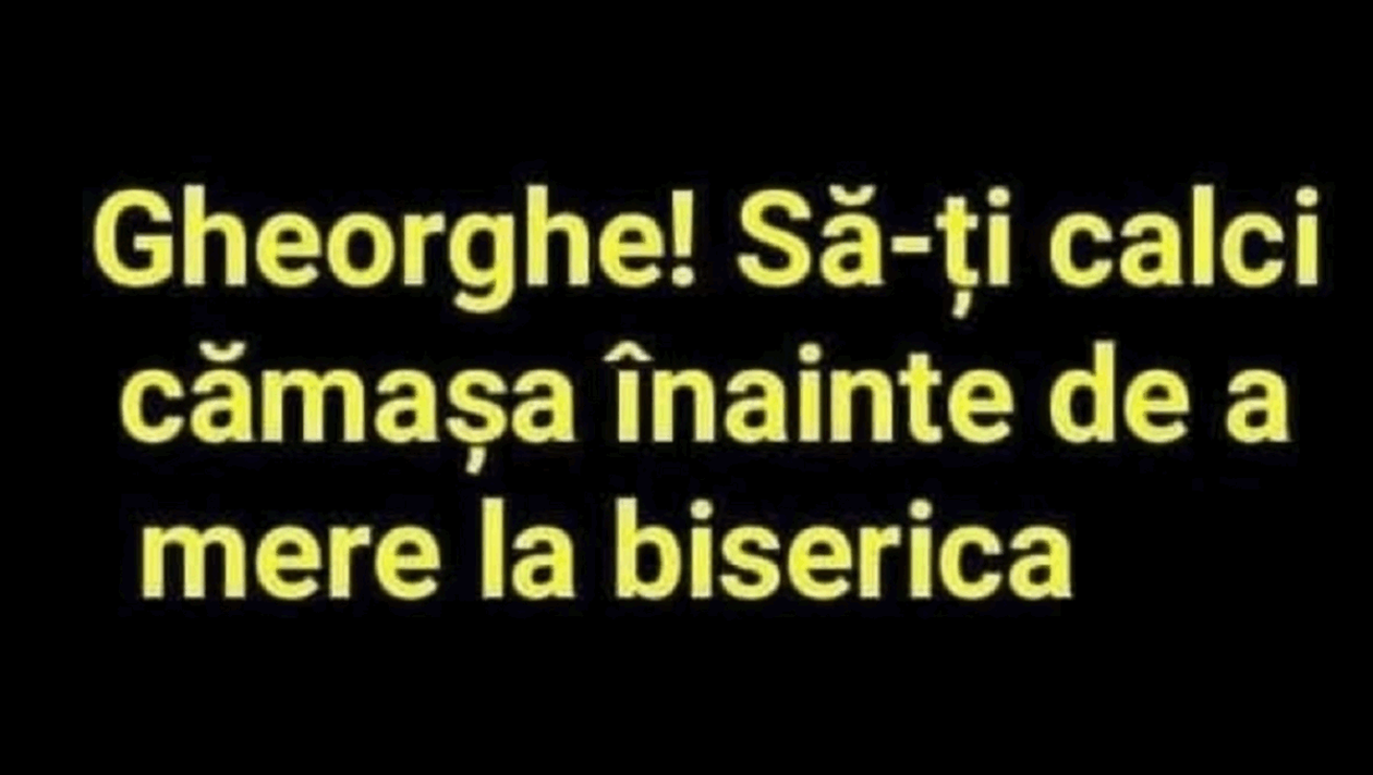 „Gheorghe, să îți calci cămașa înainte de a merge la biserică, să nu creadă oamenii că nu am grijă de tine”, este bancul de sâmbătă.