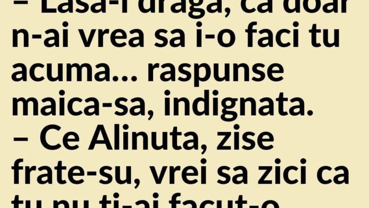-Lasă-l dragă, că doar n-ai vrea să i-o faci tu acuma… răspunse maică-sa indignată.