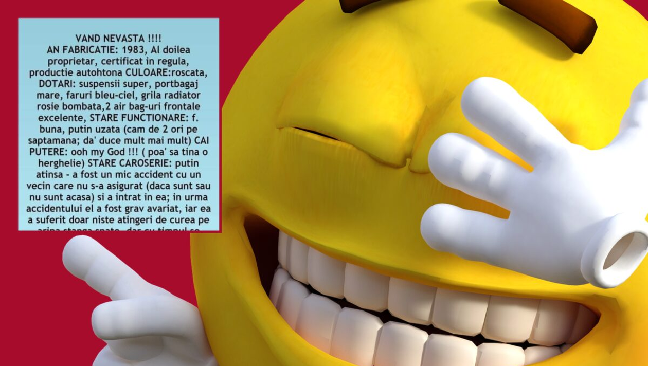 Surpriza vine la capitolul „accesorii” pentru că bărbatul a scos-o la vânzare cu toate cele 😂 Redăm mai jos „anunţul” simpatic din bancul zilei de sâmbătă: