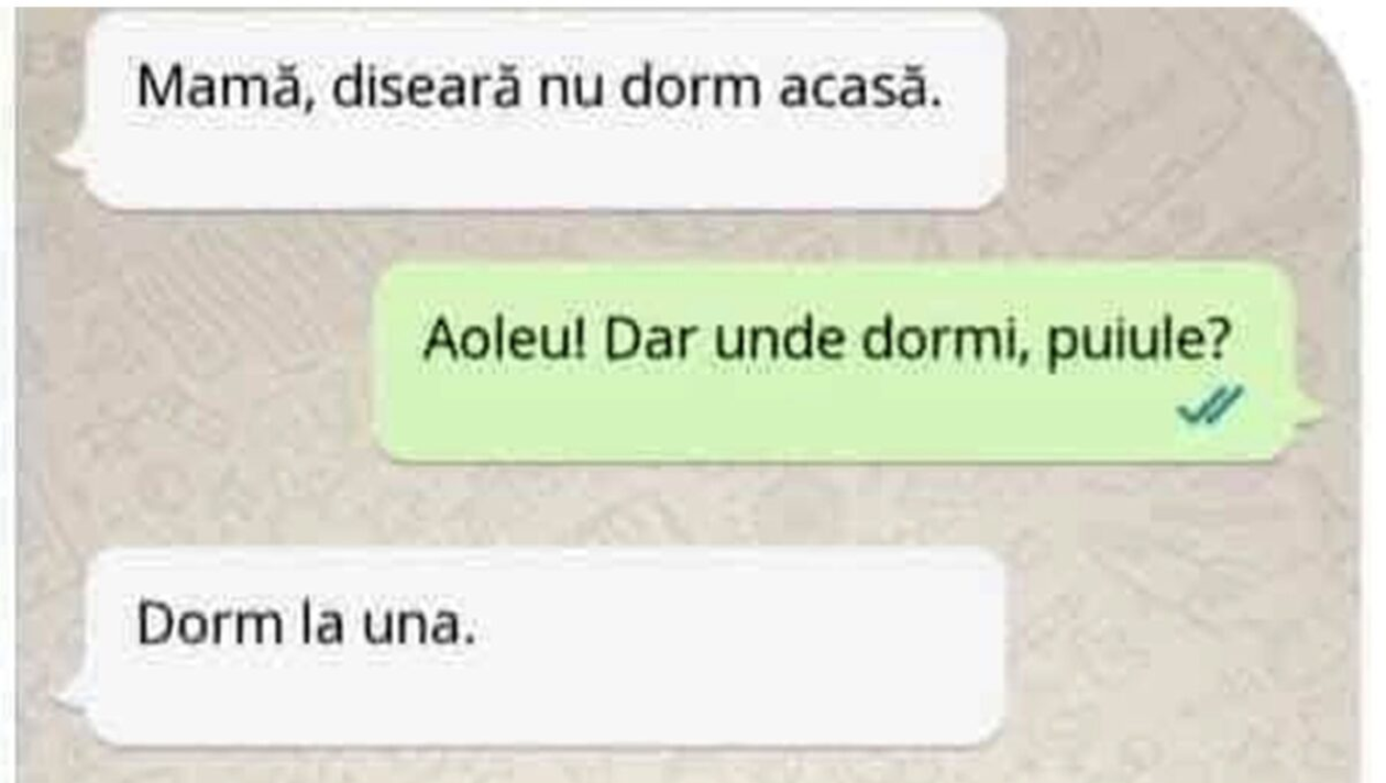 – Mamă, diseară nu dorm acasă.