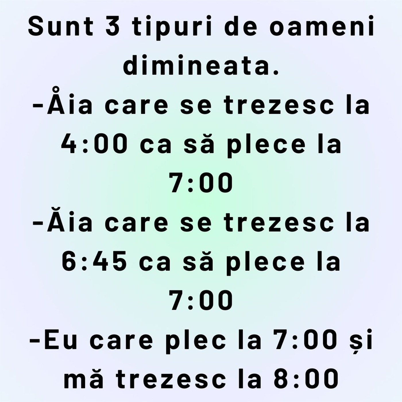 Sunt 3 tipuri de oameni dimineata.