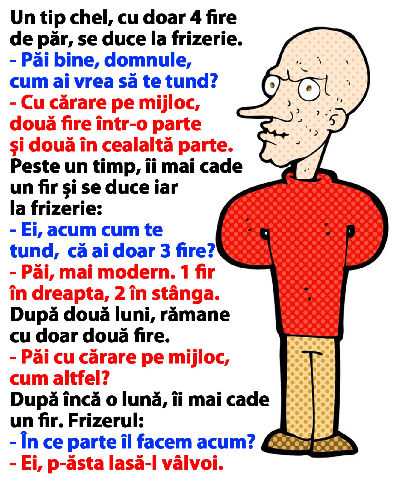 – Ei, acum cum te tund, că ai doar 3 fire?