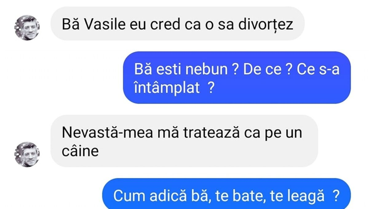 Bancul de weekend. Este vineri, weekendul se apropie cu pași repezi, și este momentul să aveți zâmbetul pe buze! Un bărbat îi spune prietenului său, pe nume Vasile, că are în plan să divorțeze. Motivul? L-a rostit chiar el. Spor la râs, dragi cititori!
