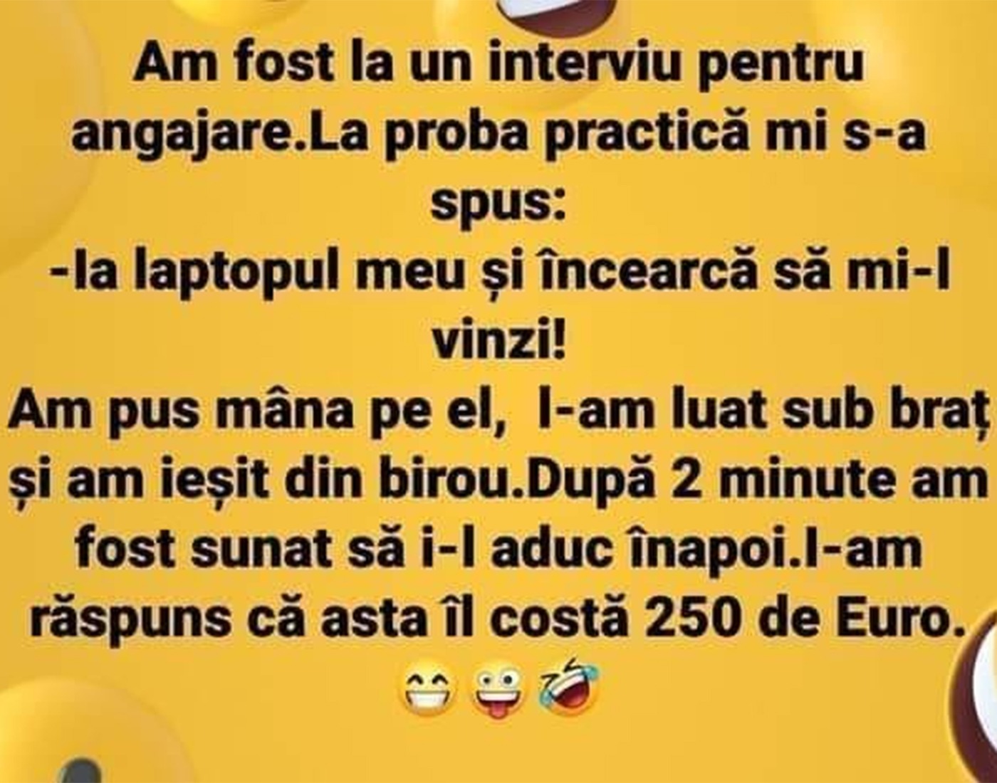 „Am fost la un interviu pentru angajare. La proba practică mi s-a spus: