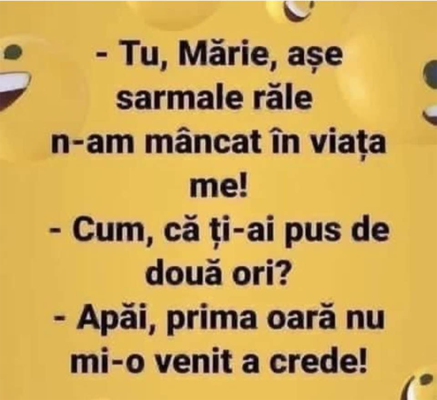 „Tu, Mărie, așe sarmale răle n-am mâncat în viața me!